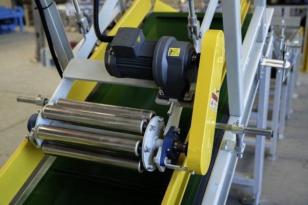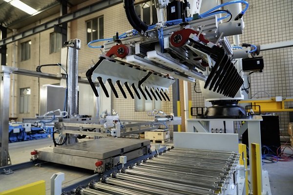 袋碼垛包裝線必備的幾大部件包括:倒袋機(jī)構(gòu)、轉(zhuǎn)向機(jī)構(gòu)、震動整平、壓包以及抓取。但由于用戶場地上的一些局限性,但速度有特別高的強(qiáng)烈需求,因此在制作過程中,艾訊工程師充分發(fā)揮創(chuàng)造性,將原本應(yīng)該直行的輸送機(jī)做成無動力斜坡式,既解決了場地問題,又兼顧了效率問題。