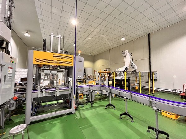 該線體主要針對(duì)辣椒面、胡椒面、海鹽黑胡椒等調(diào)味料瓶子進(jìn)行裝箱和碼垛,該線體由開(kāi)箱機(jī)、裝箱機(jī)、封箱機(jī)、供棧機(jī)、機(jī)器人碼垛機(jī)、在線纏繞機(jī)以及動(dòng)力輸送機(jī)等組成。該項(xiàng)目可針對(duì)紙箱和紙托兩種產(chǎn)品同時(shí)進(jìn)行碼垛,不需要封箱的紙托類產(chǎn)品可以直接從封箱機(jī)內(nèi)部通過(guò),底托式抓手設(shè)計(jì),可以同時(shí)兼容兩種類型的產(chǎn)品進(jìn)行碼垛,垛型可隨意編輯。