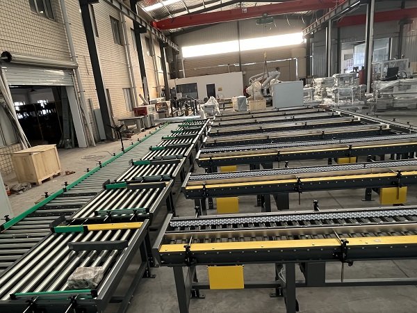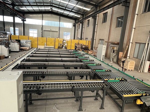 該線體主要功能是對卡丁車和賽車輪胎進(jìn)行裝箱和碼垛。線體最大亮點(diǎn)是,客戶一共有8條產(chǎn)線4種紙箱尺寸同時(shí)混產(chǎn),針對客戶的現(xiàn)實(shí)情況,艾訊采用了機(jī)器人+動(dòng)力料倉+自適應(yīng)折底封底機(jī)的結(jié)構(gòu),通過信號交互,來確定取哪款紙箱,開哪款紙箱,再通過信號識別,將紙箱輸送到指定的裝箱工位。同時(shí)該線體還配備了實(shí)時(shí)貼標(biāo)加在線打印功能,通過和上位機(jī)的實(shí)時(shí)通訊,來確定紙箱需要打印的標(biāo)簽內(nèi)容。