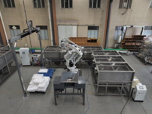 袋子卸垛是目前包裝領(lǐng)域非常常見的一種需求方式,用戶需要對托盤上的袋子進行卸垛,同時需要將卸下來的袋子進行破包,將內(nèi)部物料倒入提前準備好的料斗里,有可能只有一種物料,有時也有可能是多種物料按照一定的比例混入料斗中,之后分別輸送到指定位置。而破袋后的袋子,有的需要緩存到其他的料箱中,而有的則需要直接粉碎后,再次回收。