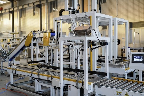 玉米種子包裝線是一條比較典型的自動化包裝線體,該線體是由熱熔膠開箱機(jī)、自動裝箱機(jī)、熱熔膠封箱機(jī)、稱重剔除機(jī)、貼標(biāo)機(jī)以及動力輸送機(jī)組成。同時該機(jī)還應(yīng)客戶要求,在裝箱工位增加了自動放置墊板工序,使得整條線體的包裝流程更加智能更加流暢。