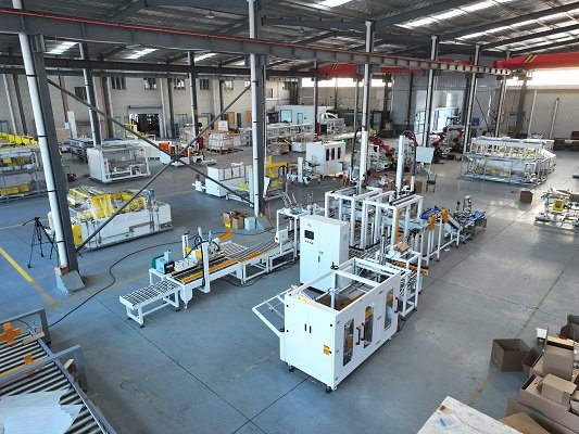 該線體將兩條包裝線合流在一起,共用一套開箱機(jī)和封箱機(jī),既節(jié)省場地,又降低成本。尾端其實(shí)也可以配置紙箱的在線捆扎以及托盤的碼垛設(shè)備,形成紙箱以及托盤的全產(chǎn)線自動化包裝。